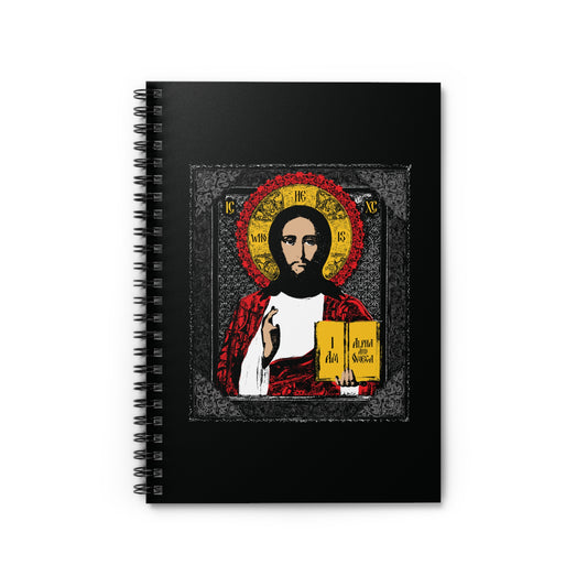 Christ Pantocrator Icono-Graphic | He-Who-Is | I Am the Alpha and Omega | Ancient Icon Graphic Design | Christian Spiral Notebook