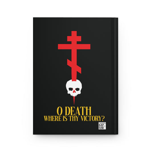 O Death Where is Thy Victory? (1 Corinthians 15:55) | Cross Stabbing Skull | Yellow Text | Orthodox Christian Accessory | Hardcover Journal