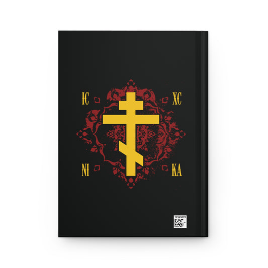 ICXC NIKA Yellow Russian Cross on Ornate Red Background Design | Jesus Christ Conquers | Orthodox Christian Accessory | Hardcover Journal