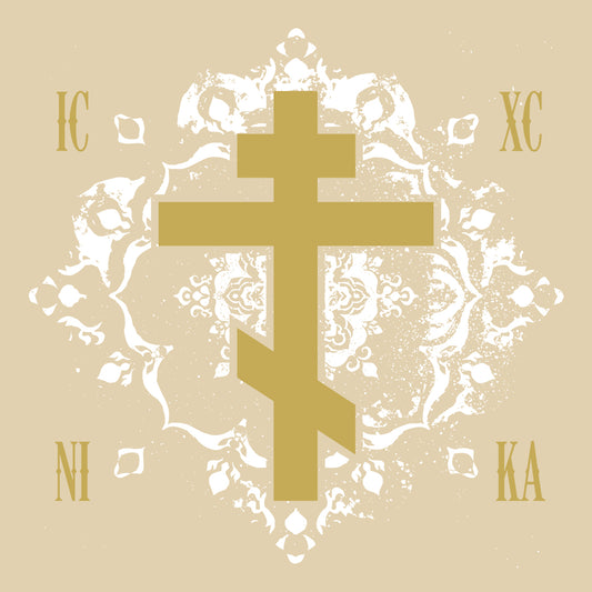 Gold Orthodox Cross ICXC NIKA (Small Design) | White Medieval Ornate Floral Pattern | Jesus Christ Conquers | Christian Hoodie