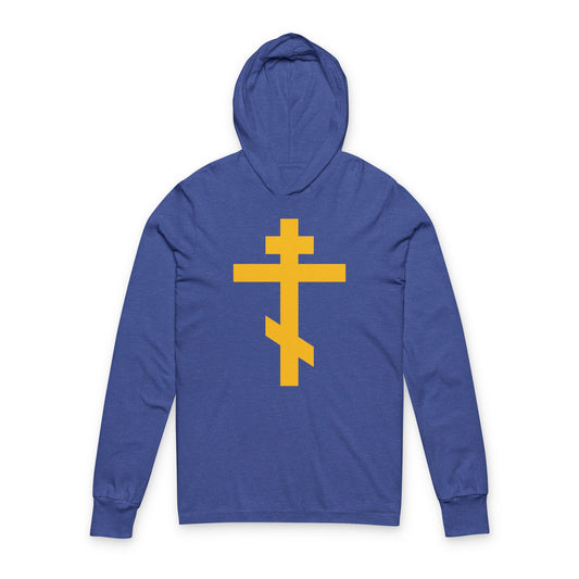 Yellow Orthodox Cross | Precious and Life-Giving Weapon of Unseen Warfare | Scourge of Demons | Christian Cotton Hooded Shirt
