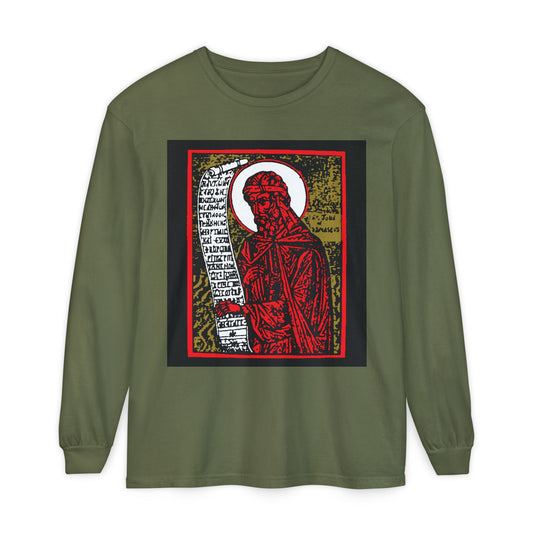 St. John of Damascus Icono-Graphic | Orthodox Christian Saint | Red Gold & Black High Contrast Design | Christian Long Sleeve Cotton Shirt