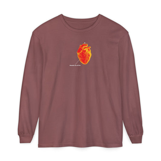 Remember You Will Die Retro Medical Textbook Heart Design | Inverted Red & Orange | Memento Mori | Christian Cotton Long Sleeve
