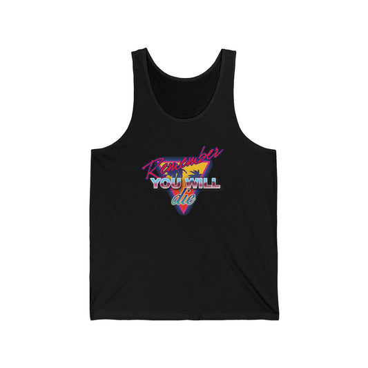 Remember You Will Die Palm Tree 80s Retro Synthwave Style | Memento Mori | Nostalgic Orthodox Christian Cotton Tank Top