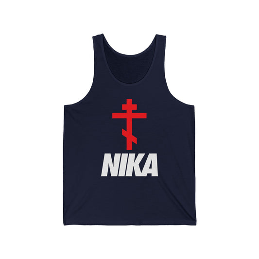 NIKA Red Orthodox Cross (Small) | NIKE Logo Mashup | Minimalist Corporate Sports Logo Aesthetic | Orthodox Christian Jersey Tank Top