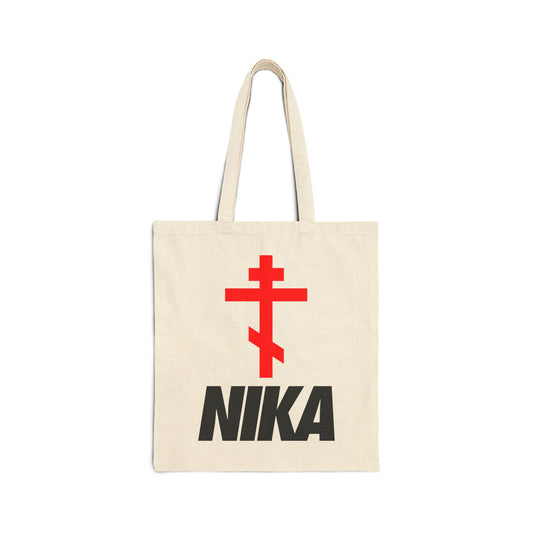 NIKA Red Orthodox Cross | NIKE Logo Mashup | Minimalist Corporate Sports Logo Aesthetic | Orthodox Christian Cotton Canvas Tote Bag