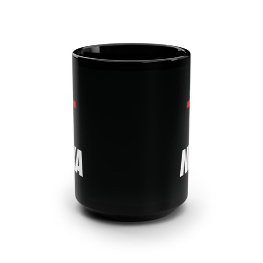 NIKA Red Orthodox Cross White Text Black Background | NIKE Logo Mashup | Sports Logo Aesthetic | Orthodox Christian Black Mug