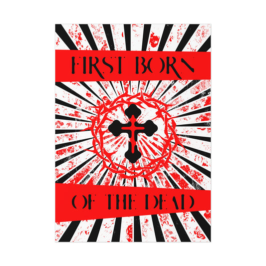 First Born of the Dead | Orthodox Cross and Crown of Thorns | Red White & Black Design with Rays | Orthodox Christian Art Poster