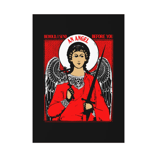Behold I Send an Angel Before You (Ex 23:20) | Guardian Angel With Cross & Sword IconoGraphic | Orthodox Christian Art Poster