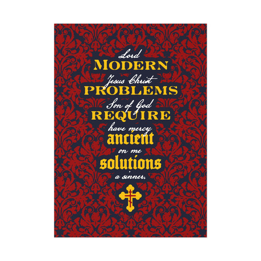 Modern Problems Require Ancient Solutions (Jesus Prayer, Floral Background) No. 2 | Orthodox Christian Art Poster