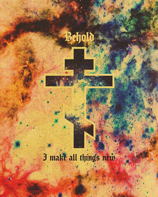 Behold, I Make All Things New (Rev 21:5) | Cosmic Orthodox Cross On Inverted Starfield | Second Coming | Orthodox Christian Art Poster