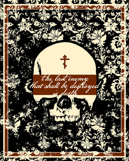 The Last Enemy That Shall Be Destroyed is Death (1 Cor 15:26) | Earthtone Skull and Floral Design | Resurrection | Orthodox Christian 15oz Black Mug