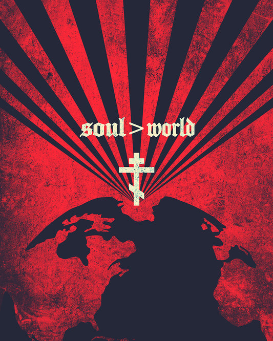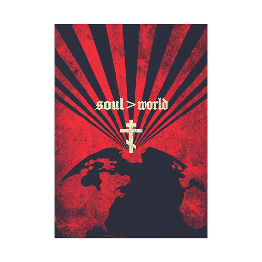 What Shall it Profit a Man | Matthew 16:26 | Soul Is Greater Than World | Red Earth White Cross | Orthodox Christian Art Poster