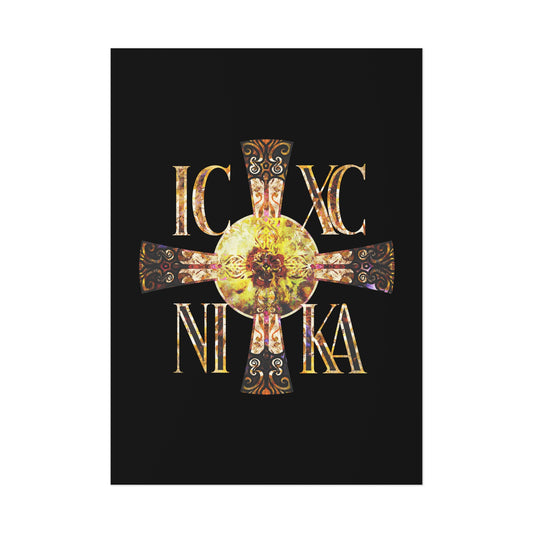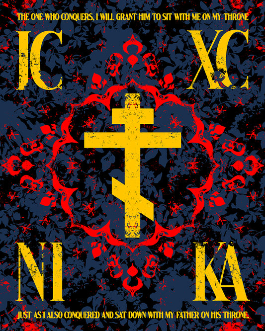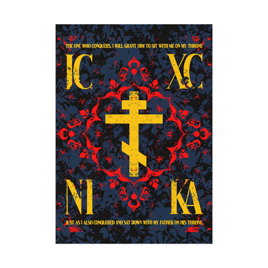 IC XC NIKA Orthodox Cross | Medieval Floral Design | The One Who Conquers (Revelation 3:21) | Orthodox Christian Art Poster