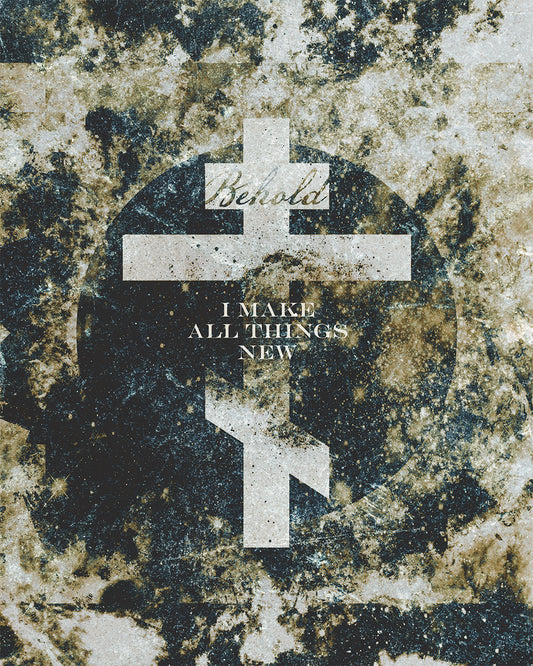 Behold, I Make All Things New | Revelation 21:5 | Cosmic Textured Orthodox Cross | Parousia | Orthodox Christian Art Poster