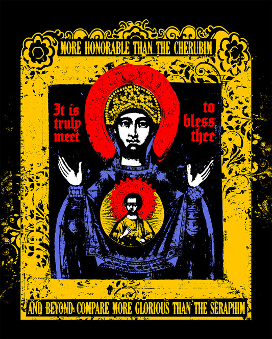 It is Truly Meet To Bless Thee Iconographic | Axion Estin Hymn to the Mother of God Theotokos | Orthodox Christian Art Poster