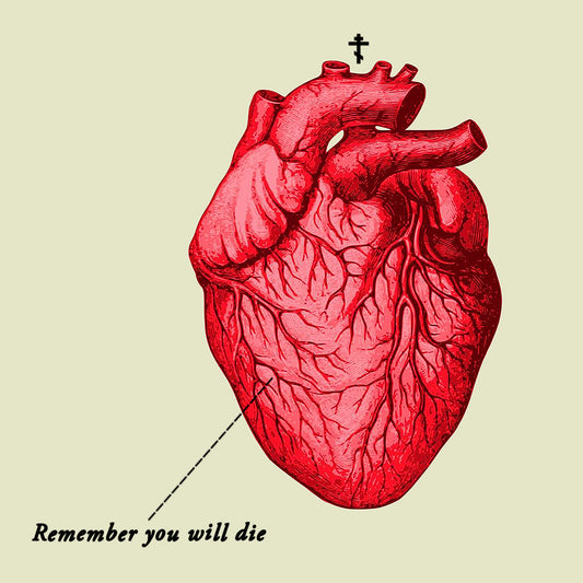Remember You Will Die | Retro Medical Textbook Heart Design | Orthodox Cross | Memento Mori | It's Later Than You Think | Christian Art Poster