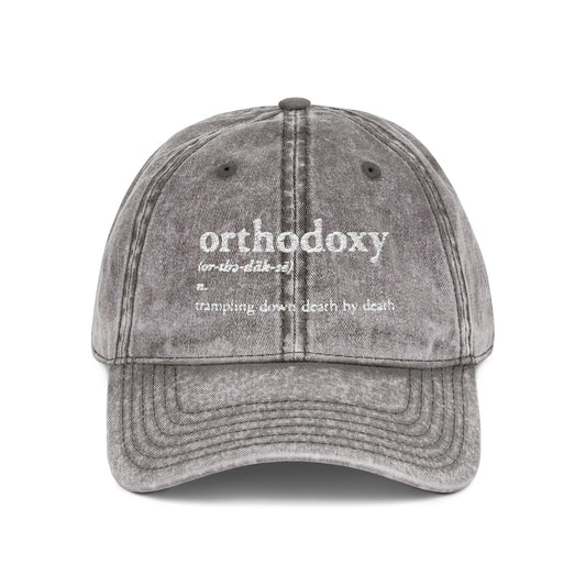 Orthodoxy Definition: Trampling Down Death By Death | Christ is King | Memento Mori | Pascha | Minimalist Christian Distressed Embroidered Cap