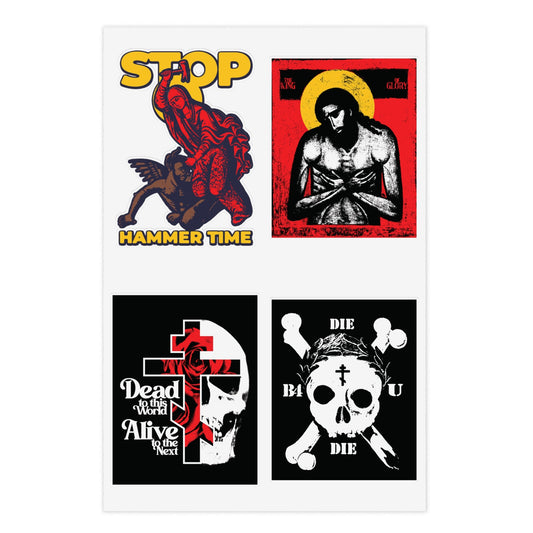 Random Mix No. 1 4x4 Sticker Sheet | Jesus Christ Iconographic | Dead to This World | St Marina | Die Before You Die | Orthodox Stickers