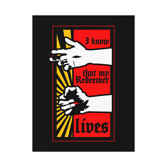 I Know That My Redeemer Lives (Job 19:25) | Comic Book Style Design | Resurrected Jesus Fist with Divine Power | Orthodox Christian Art Poster