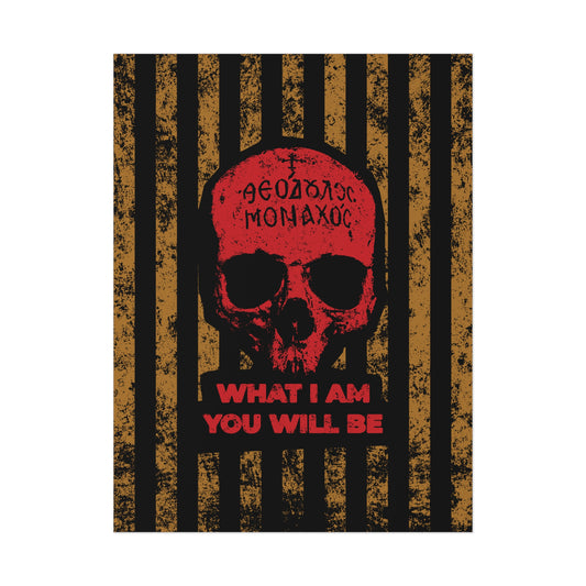 What I Am You Will Be | Memento Mori | Remembrance of Death | Mt Athos Monk Skull | Ascetic Ethos | Christian Art Poster