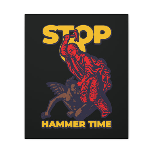 St Marina of Antioch Beating the Devil with a Hammer | Stop, Hammer Time | Modern Orthodox Meme | Red Blue and Yellow | Christian Wall Art