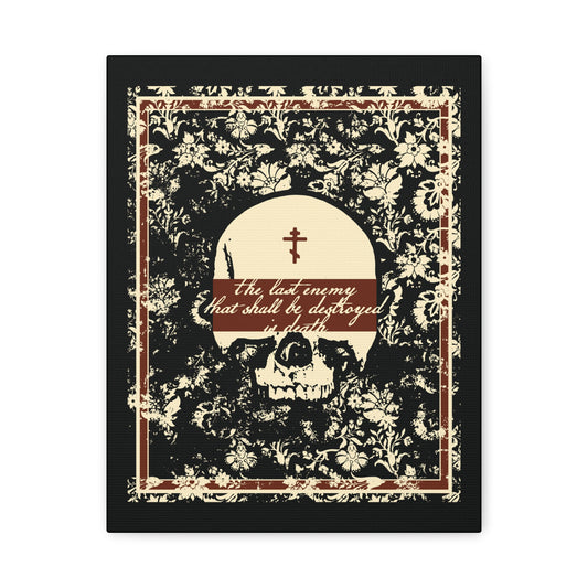 The Last Enemy That Shall Be Destroyed is Death (1 Cor 15:26) | Earthtone Skull and Floral Design | Resurrection | Orthodox Christian Canvas Art
