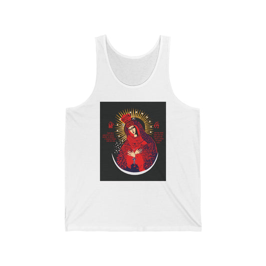 Our Lady the Gate of Dawn Icono-Graphic | Theotokos Crowned | Woman of the Apocalypse | Red Blue & Gold Design | Orthodox Christian Tank Top