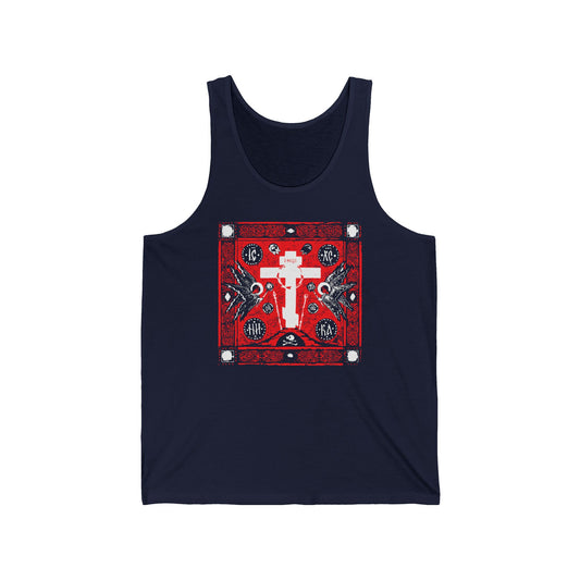 NIKA Red Orthodox Cross | NIKE Logo Mashup | Minimalist Corporate Sports Logo Aesthetic | Orthodox Christian Jersey Tank Top