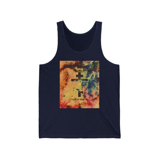 Behold, I Make All Things New (Rev 21:5) | Cosmic Orthodox Cross On Inverted Starfield | Second Coming | Orthodox Christian Jersey Tank Top
