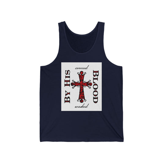 Washed/Covered By His Blood (1 John 1:7) | ICXC NIKA Ornate Red Orthodox Cross | Orthodox Christian Jersey Tank Top / Sleeveless Shirt