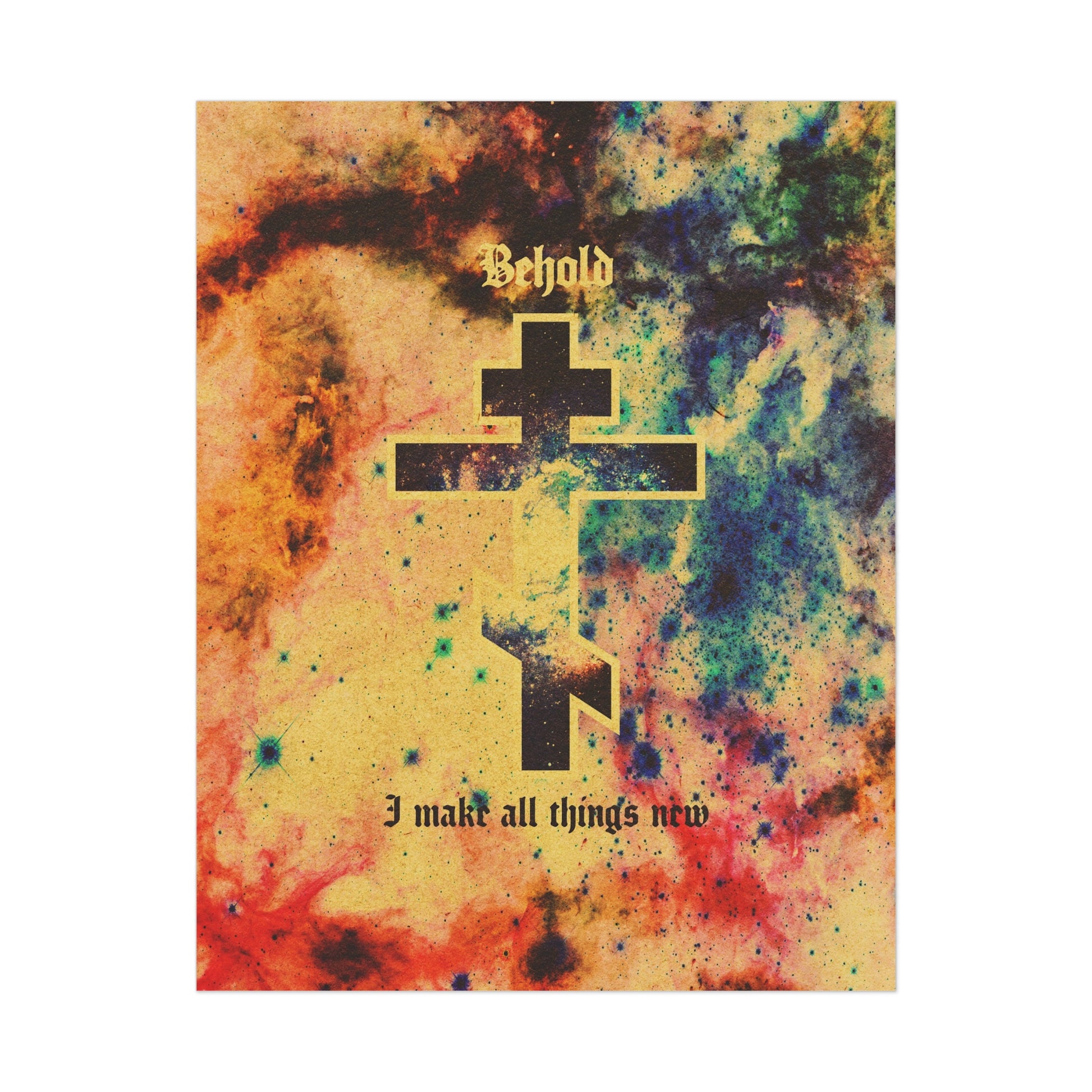 Behold, I Make All Things New (Rev 21:5) | Cosmic Orthodox Cross On Inverted Starfield | Second Coming | Orthodox Christian Art Poster