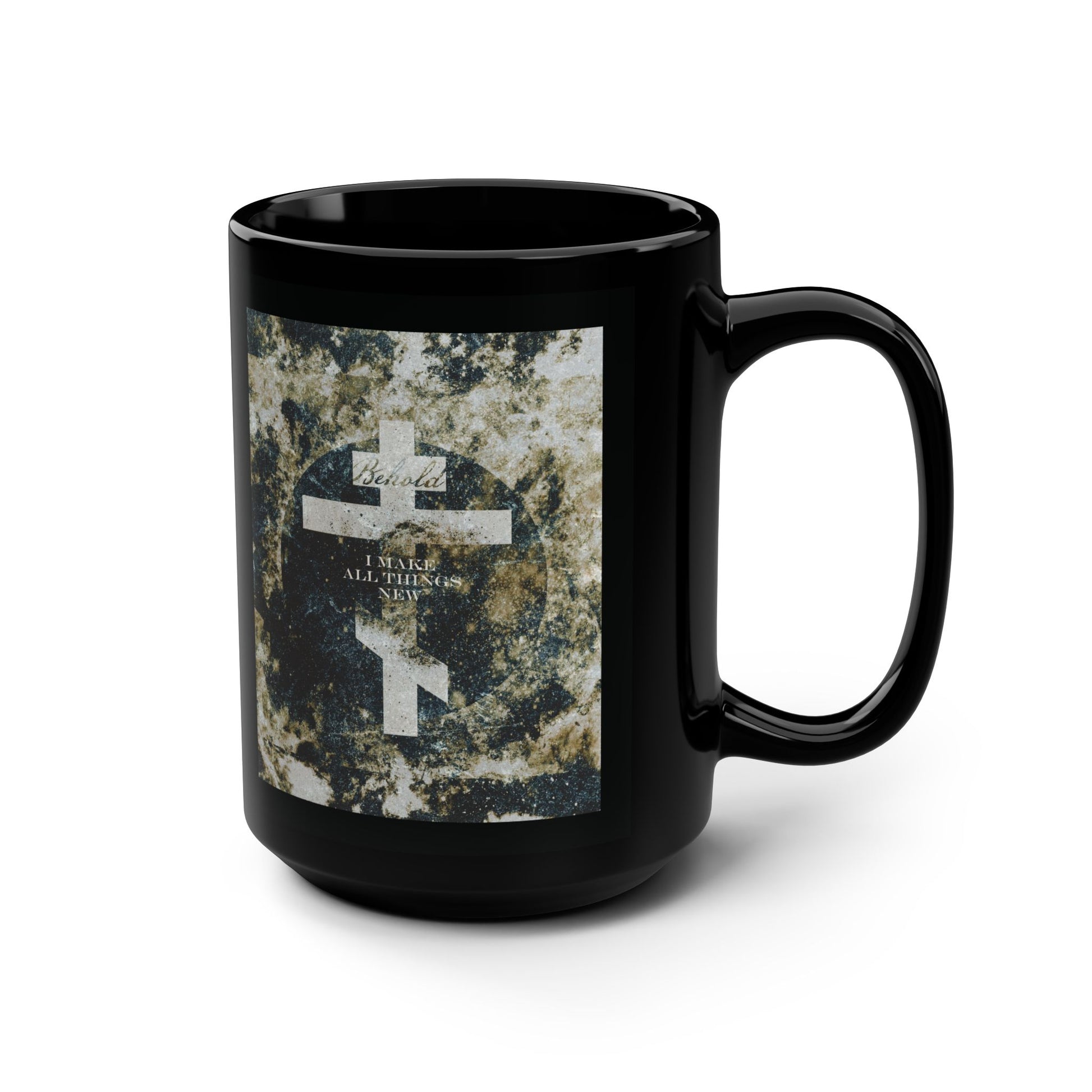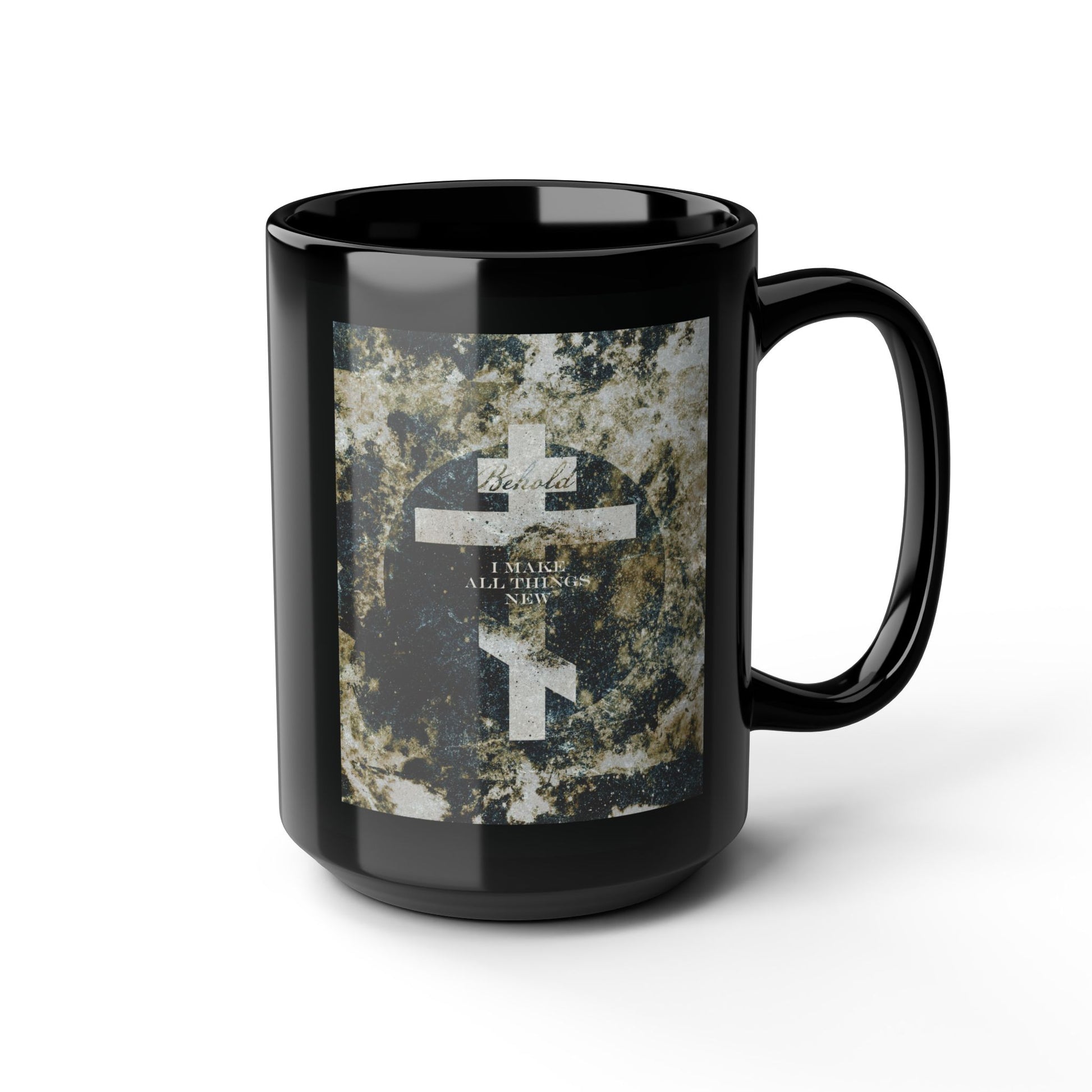 Behold, I Make All Things New | Revelation 21:5 | Cosmic Textured Orthodox Cross | Parousia | Orthodox Christian Black Mug