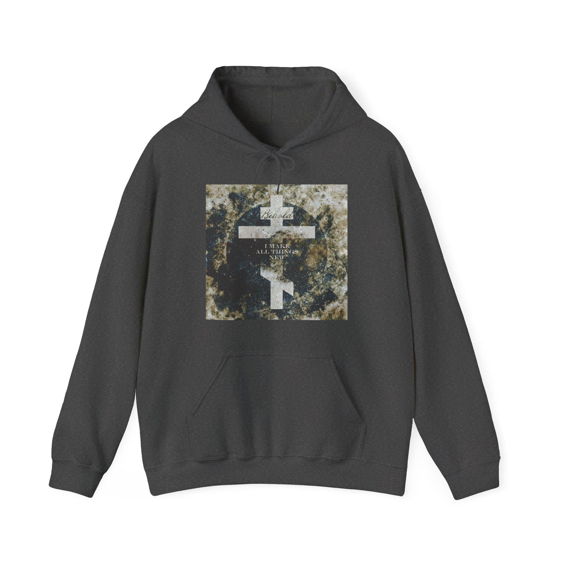 Behold, I Make All Things New | Revelation 21:5 | Cosmic Textured Orthodox Cross | Parousia | Orthodox Christian Hoodie