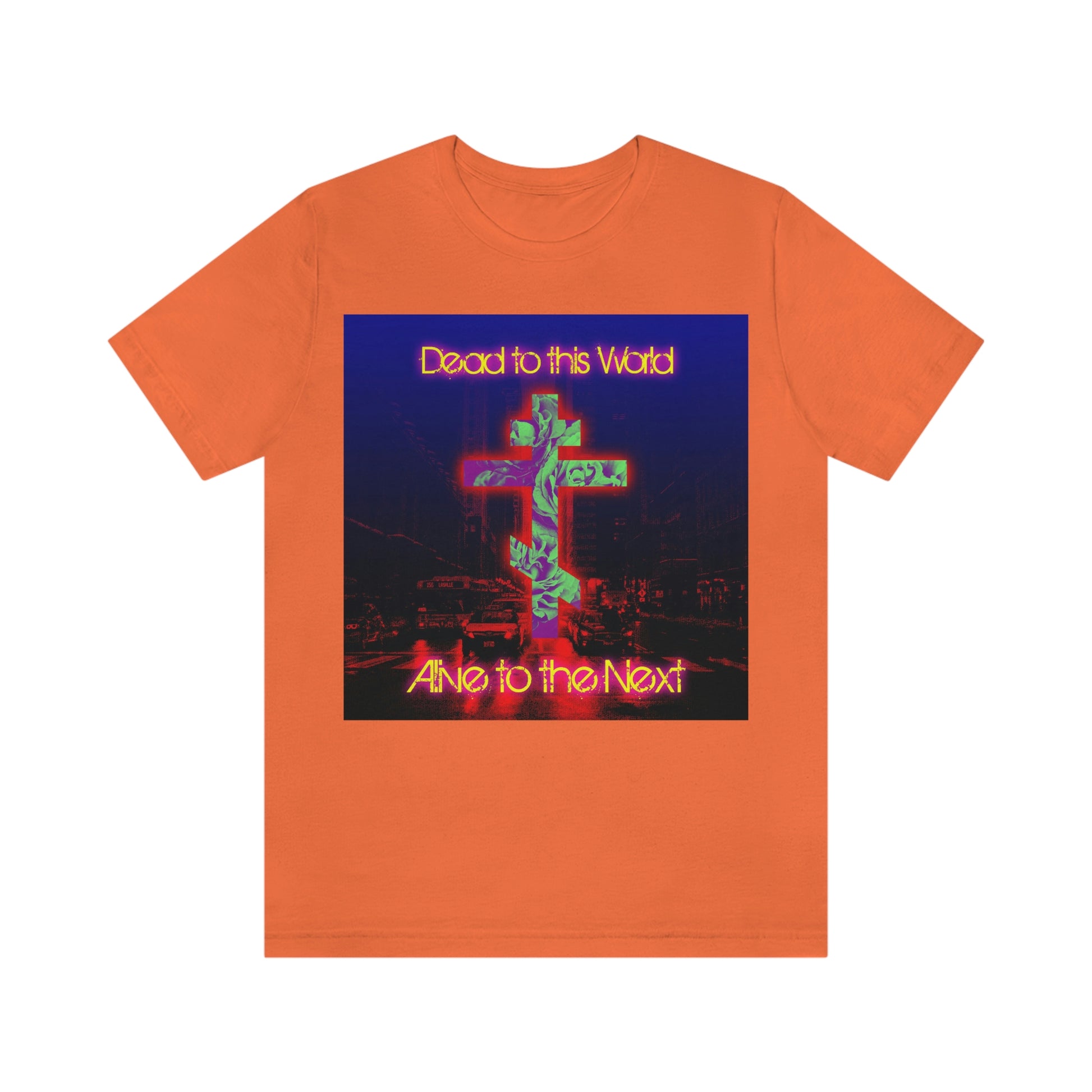 Dead to This World Alive to the Next | Cyberpunk Street Scene with Cross & Flower | Orthodox Christian T-Shirt
