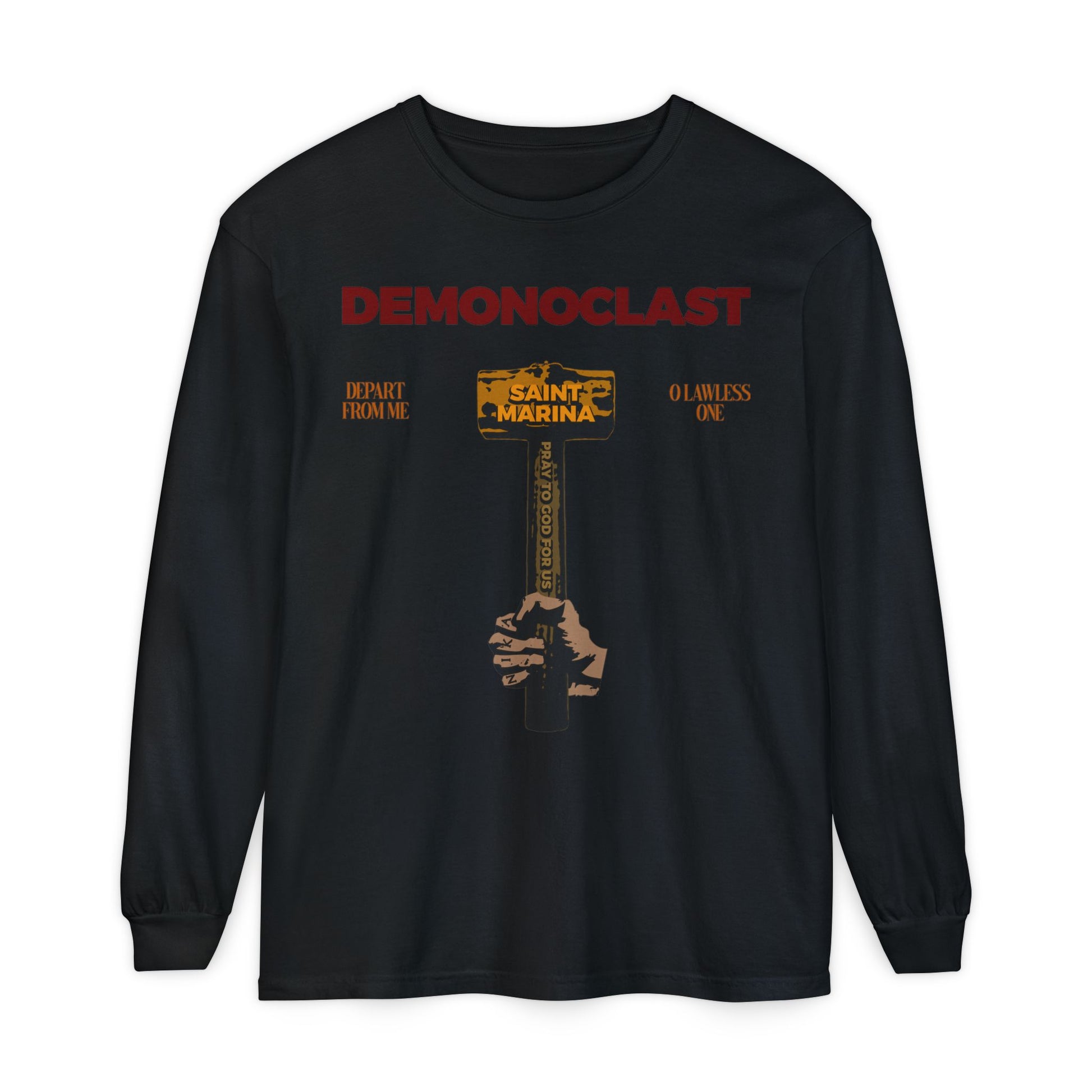 Demonoclast | St. Marina's Hammer | NIKA Fist | Christ Conquers | Demon Smasher | Unseen Warfare | Christian Martyrdom | Orthodox Long Sleeve