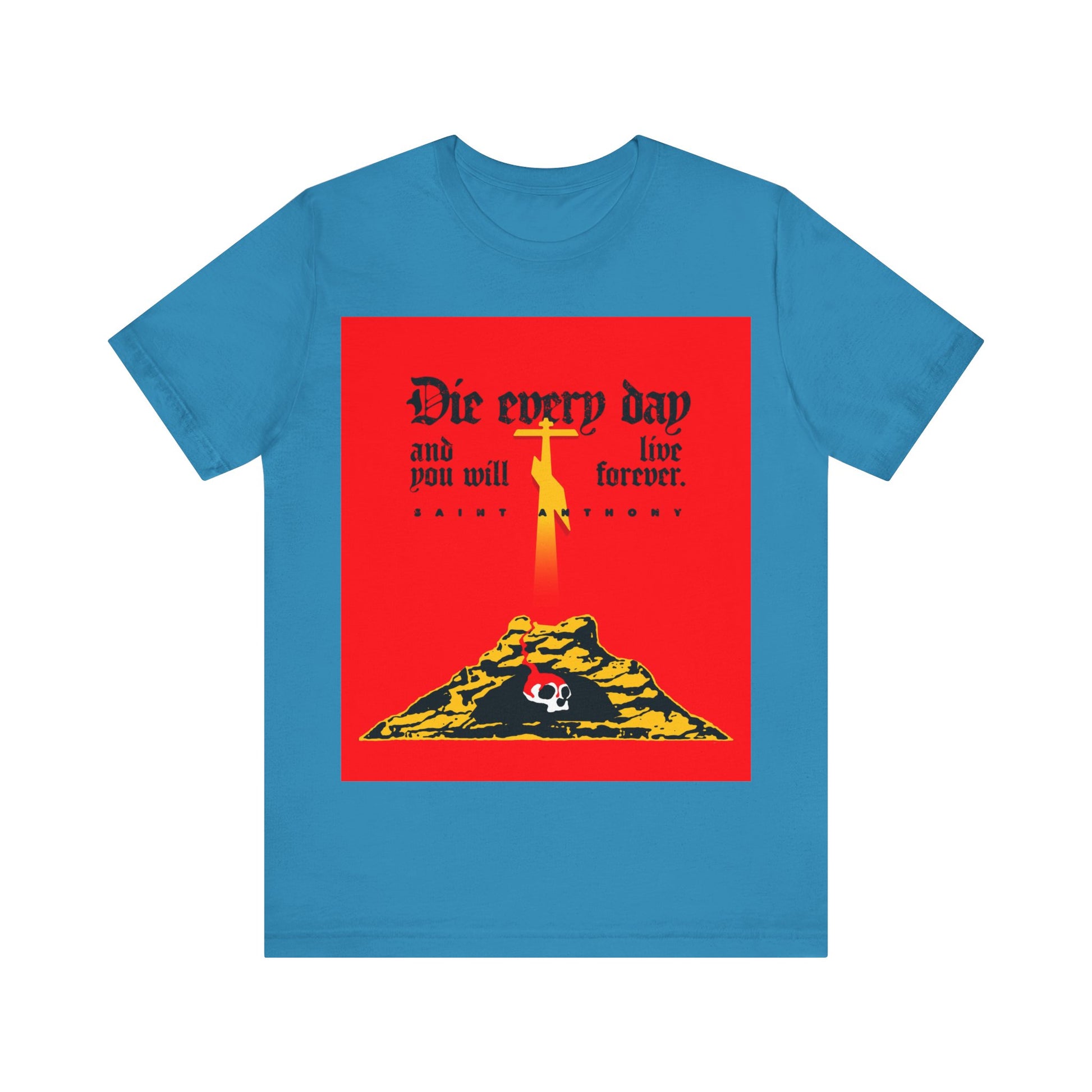 Die Every Day and You Will Live Forever | St Anthony the Great | Golgotha Cross, Skull of Adam | Red Design | Orthodox Christian Cotton T-Shirt