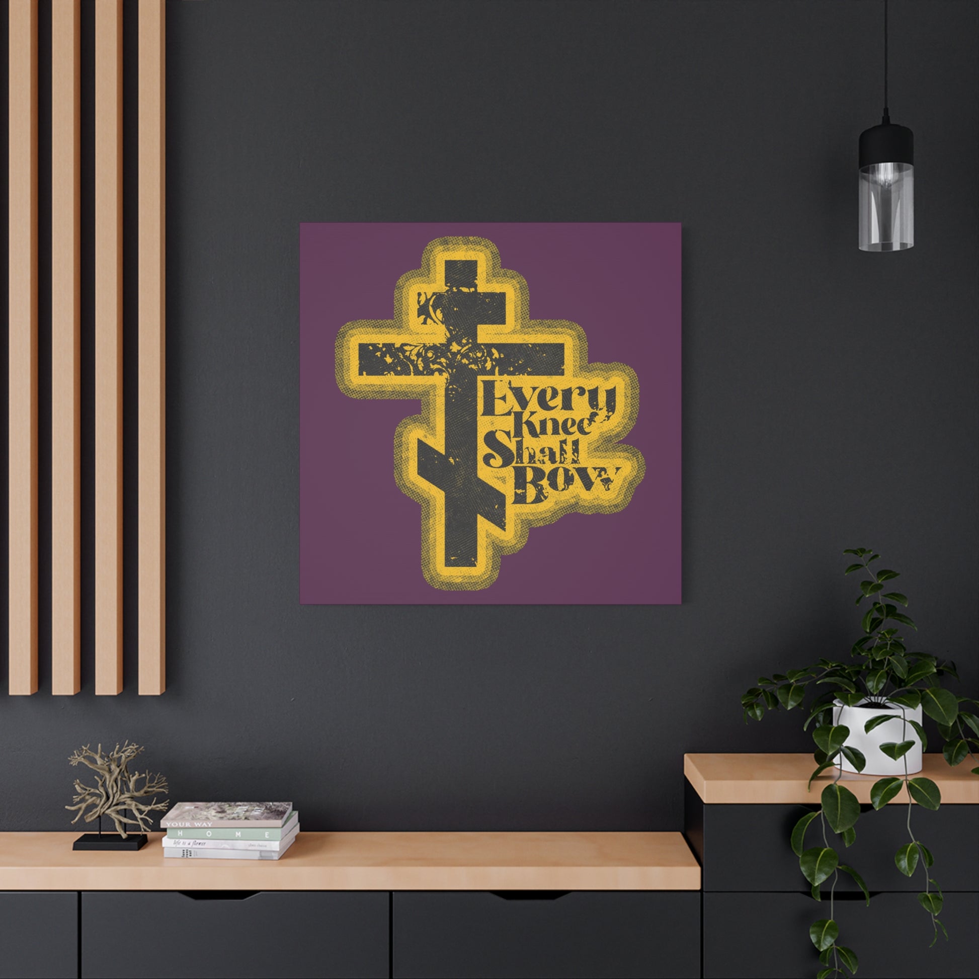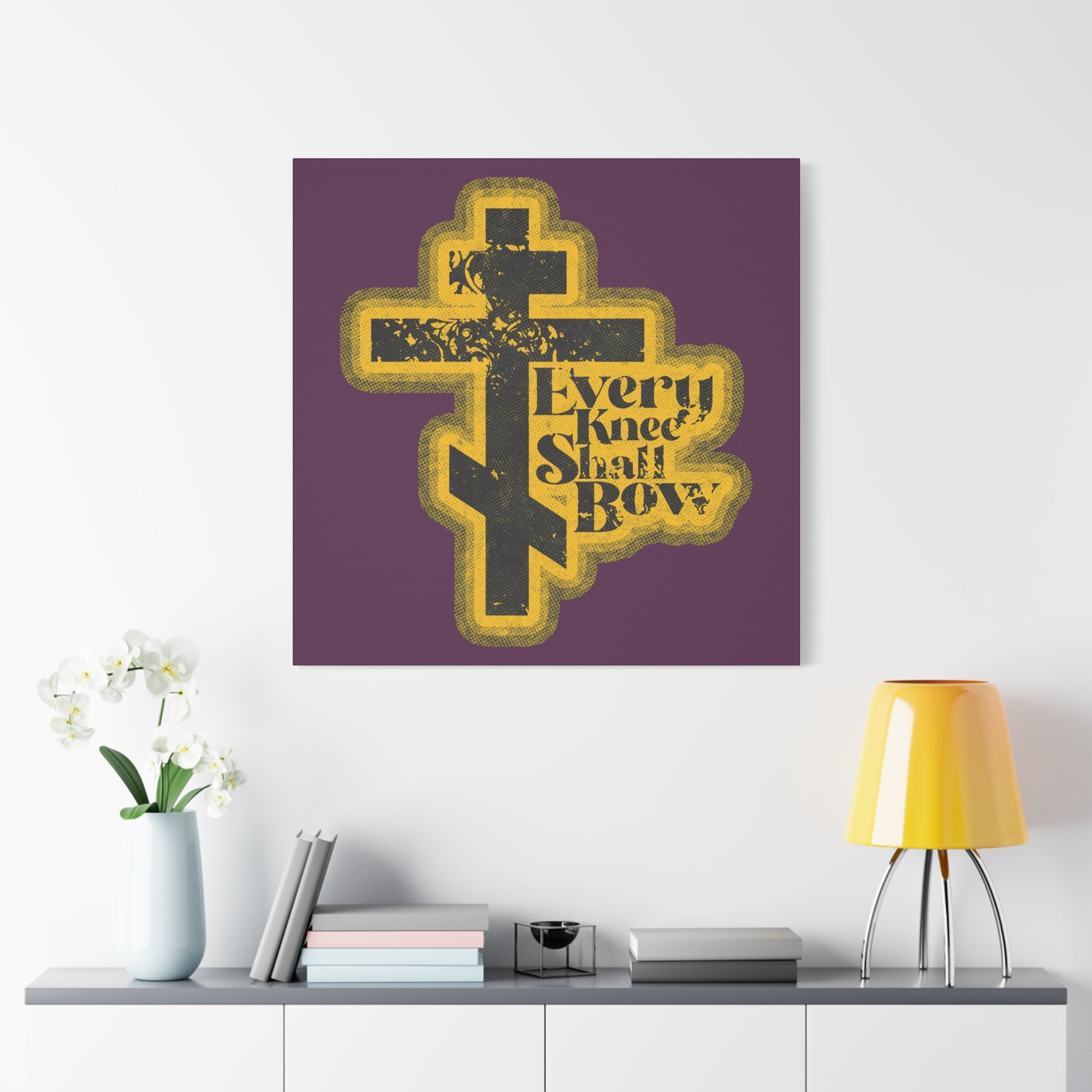 Every Knee Shall Bow | 70s Distressed Halftone Comic Book Aesthetic | Philippians 2:10-11 | Isaiah 45:23 | Christian Wall Art