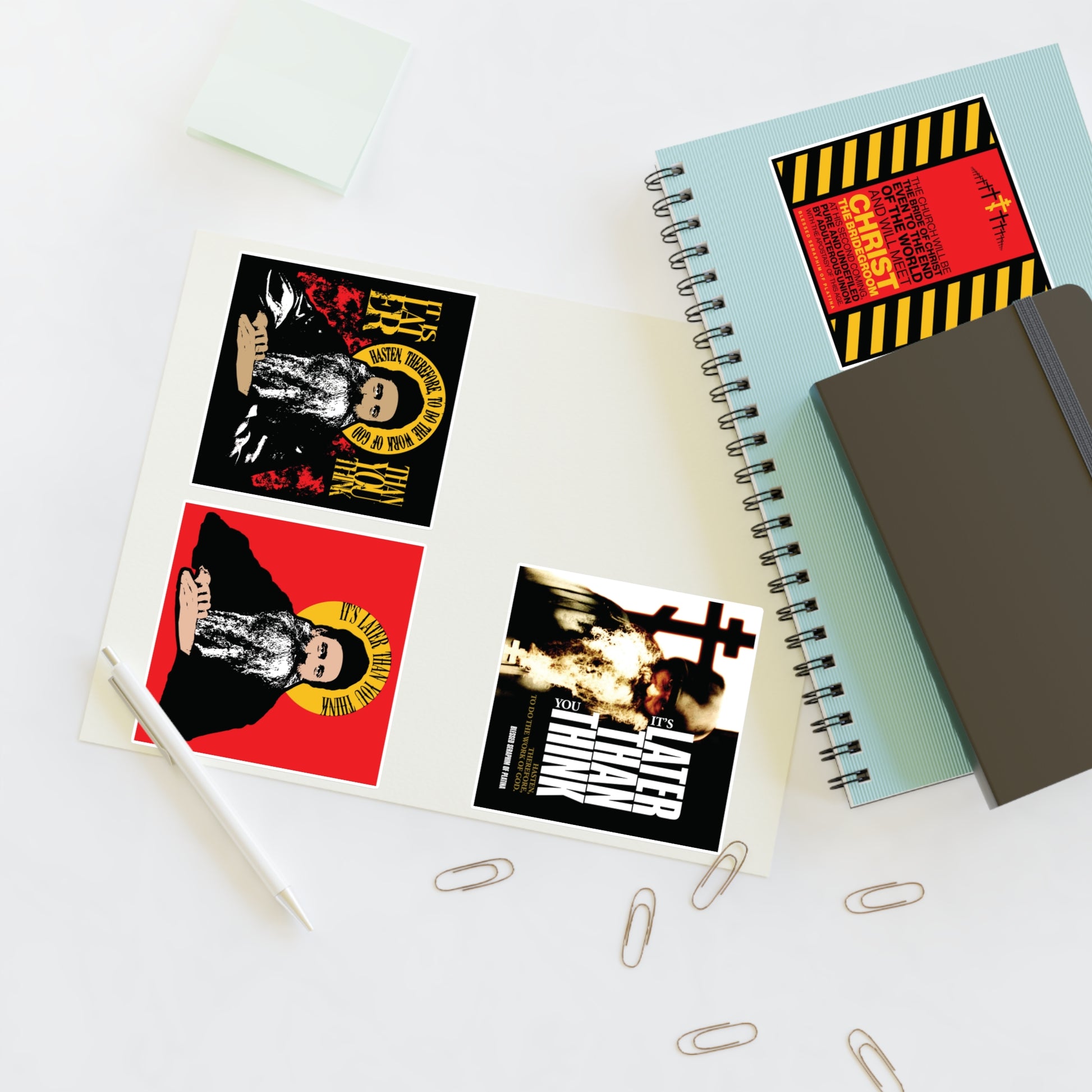 Fr Seraphim Rose 4x4 Sticker Sheet No. 1 | It's Later Than You Think | Modern Saint Graphic Decor | Apocalyptic | Orthodox Christian Stickers