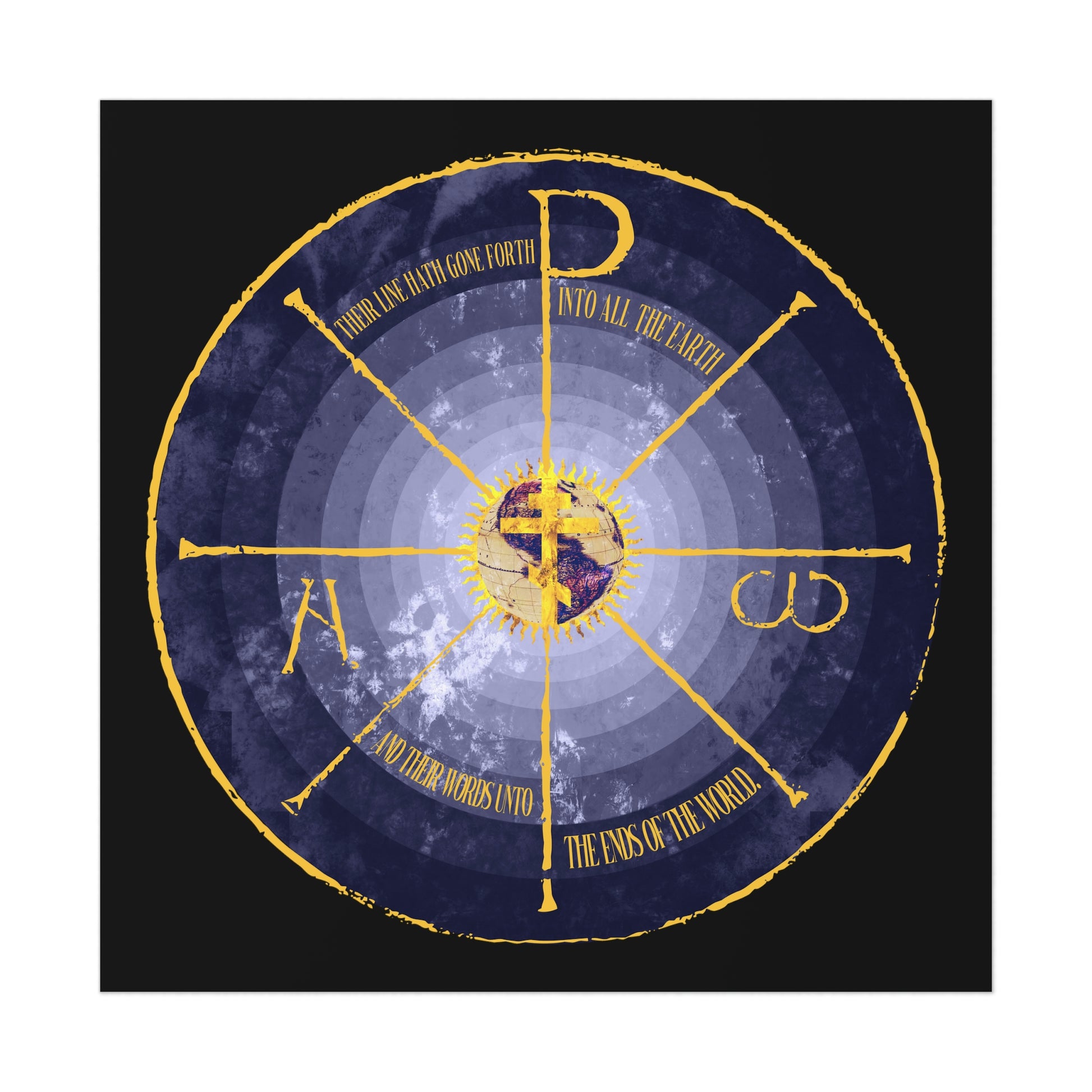 The Orthodox Church uses this same verse in every service dedicated to the apostles or saints who are “equal-to-the-apostles”: as the prokeimenon hymn in tone 8, sung immediately prior to the Epistle reading. Orthodox Christians seeing this design very likely heard the prokeimenon melody in their heads when reading the verse, while probably being confused at the word “line” replacing “sound.” The apostolic mandate, and ours, is to continue to communicate the “speech” being “poured forth” by the heavens: He died and arose from the dead, and when He returns, the entirety of the heavens will erupt with His glory.