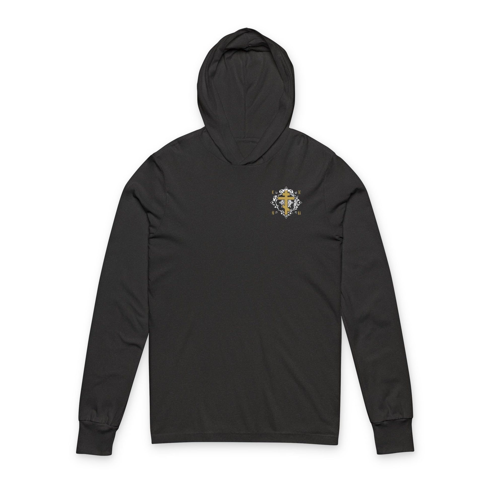 The Remembrance of Death Orthodox Christian Hooded Long Sleeve Shirt defines streetwear for unseen warfare. With the option to proclaim your allegiance to the Lord front, back, and on both sleeves, very little real estate stands to be wasted to spark a potentially conversion conversation.