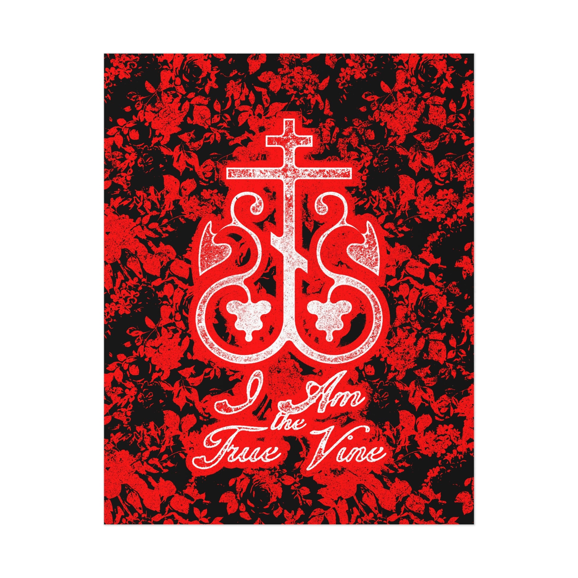 I Am the True Vine (John 15:1) | Orthodox Cross Vine Monogram | Red and Black Floral Design | Orthodox Christian Art Poster