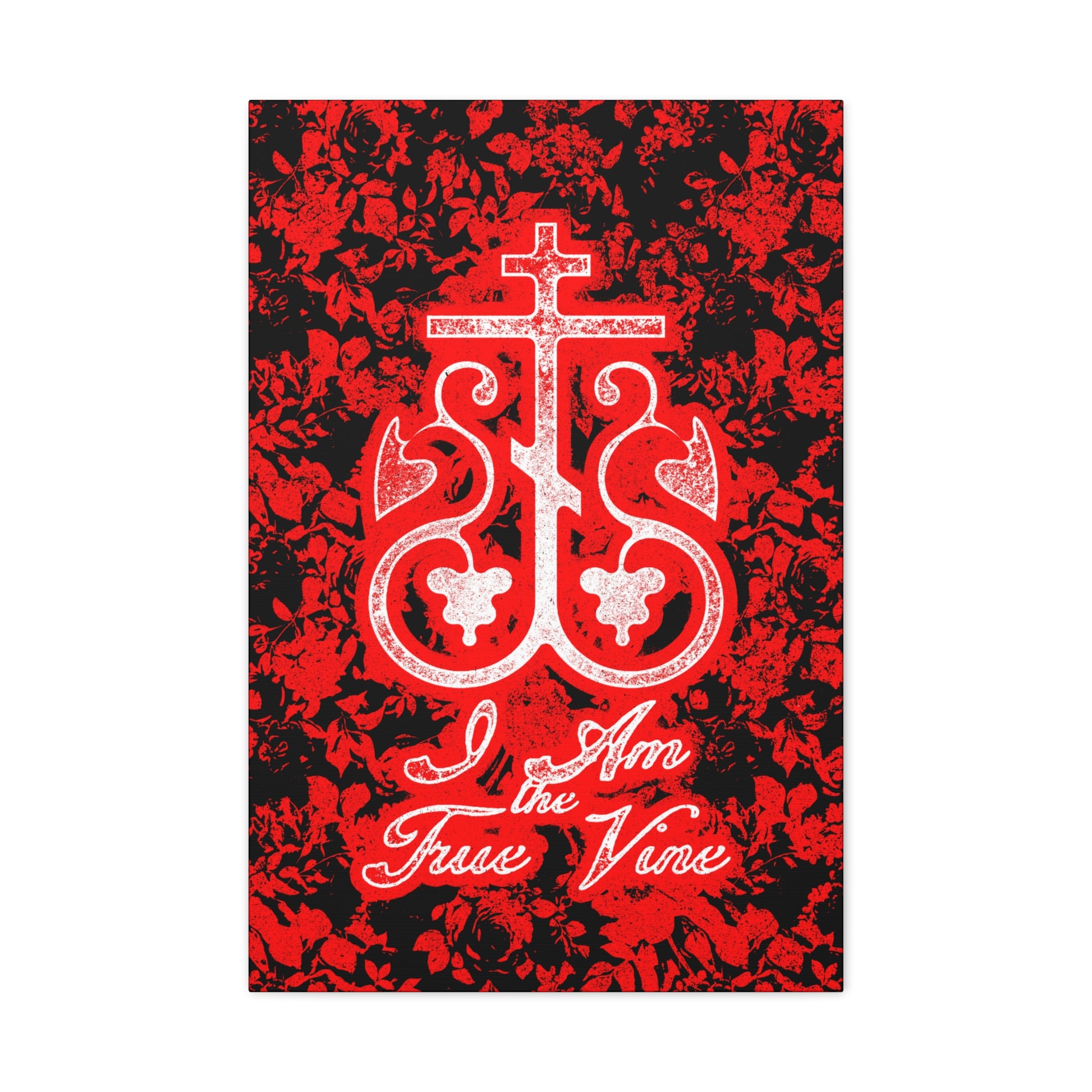 I Am the True Vine (John 15:1) | Orthodox Cross Vine Monogram | Red and Black Floral Design | Orthodox Christian Canvas Art