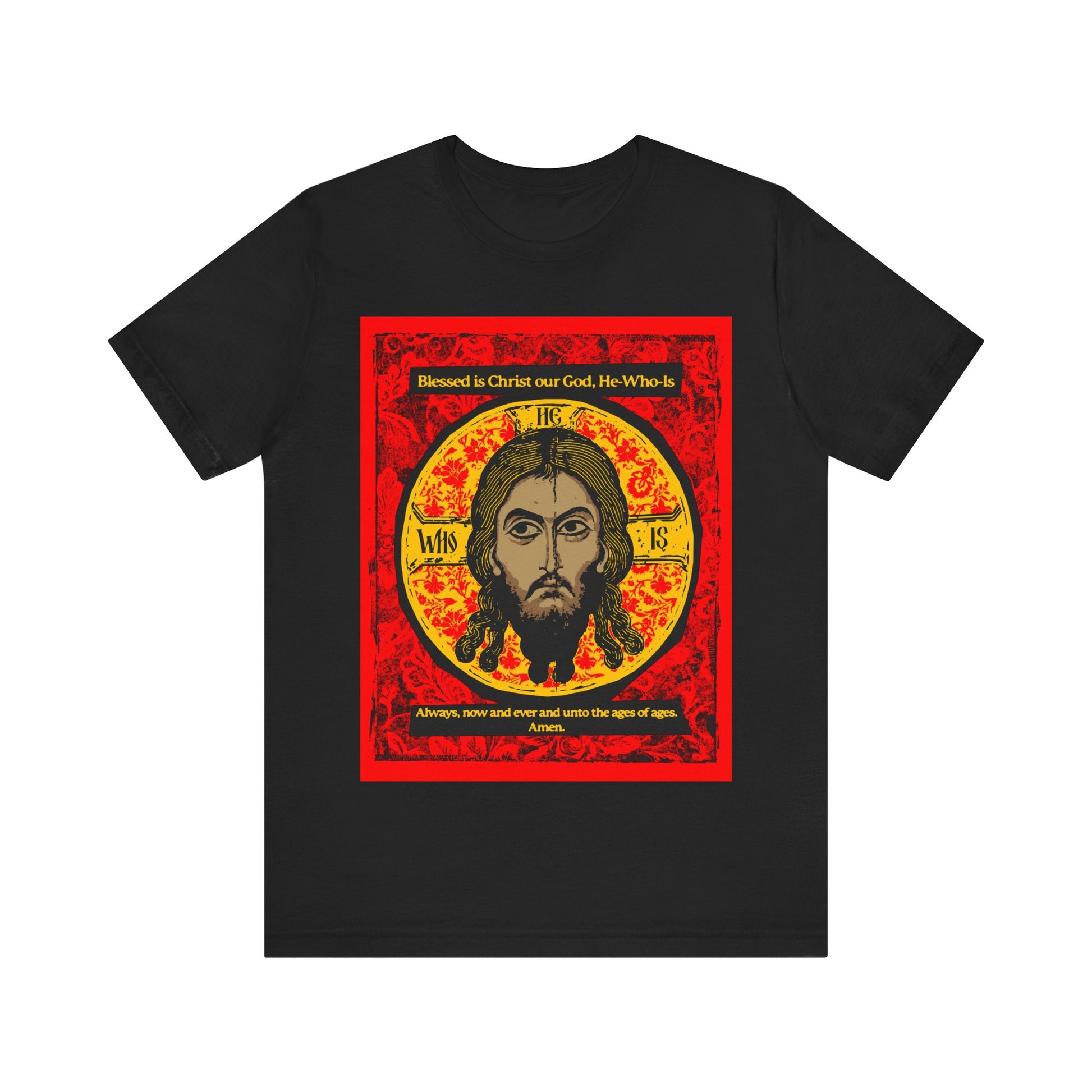 Made Without Hands (Mandylion/Image of Edessa) | Jesus Christ Orthodox Icon Graphic Design | Red Black & Yellow | Orthodox Christian T-Shirt