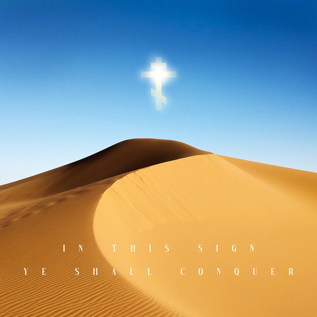 In This Sign Ye Shall Conquer (In hoc signo vinces) | St Constantine the Great | Glowing Russian Cross in a Desert Sky | Orthodox Christian T-Shirt
