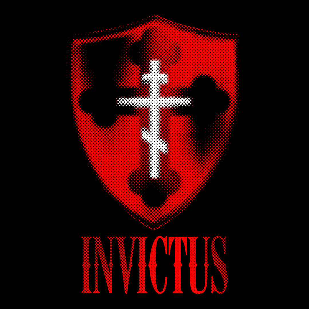 Invictus Christ Unconquered | White Cross on Red Shield | Textured Halftone Design | Orthodox Christian T-Shirt