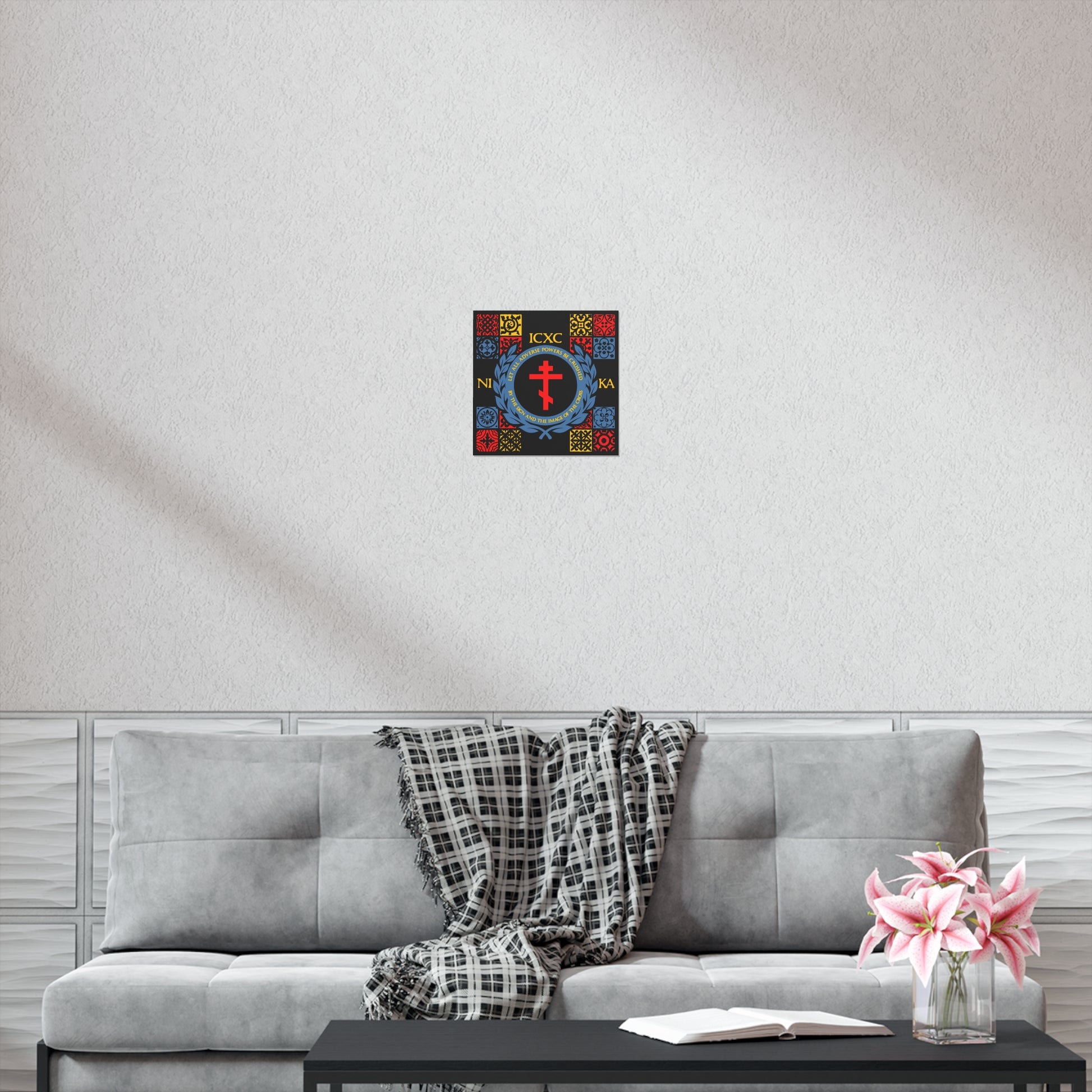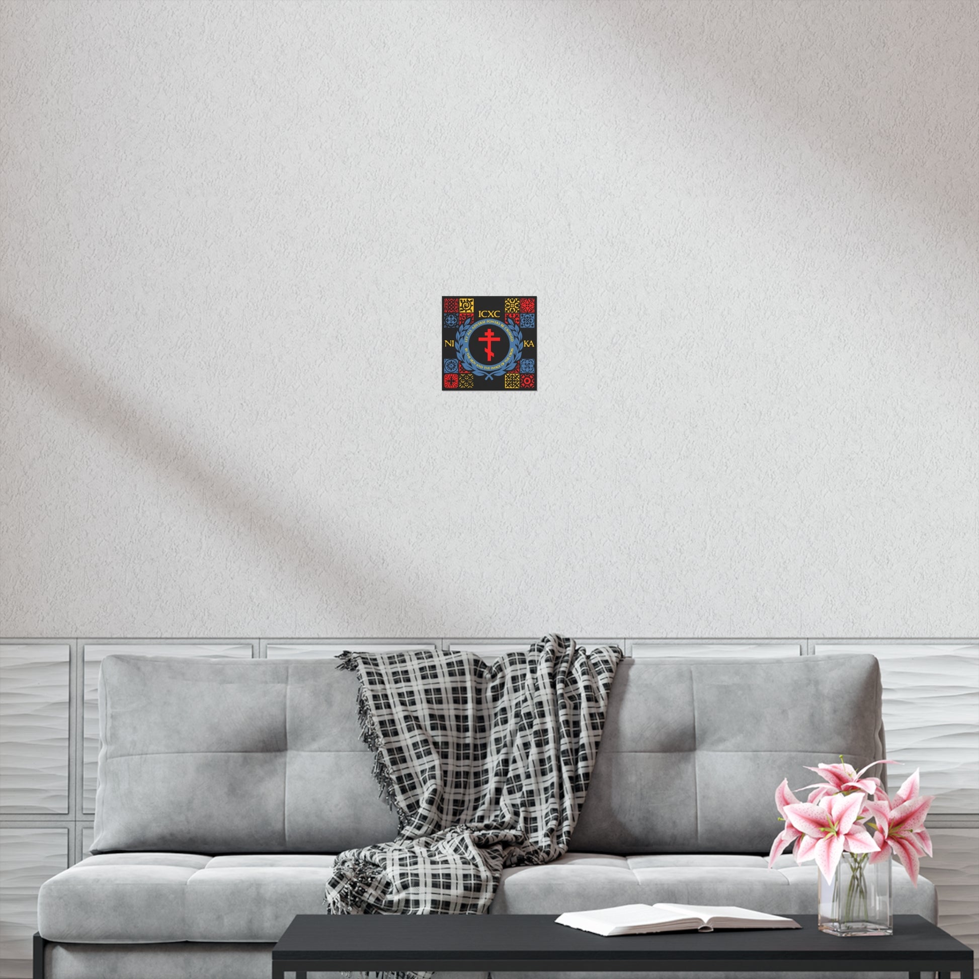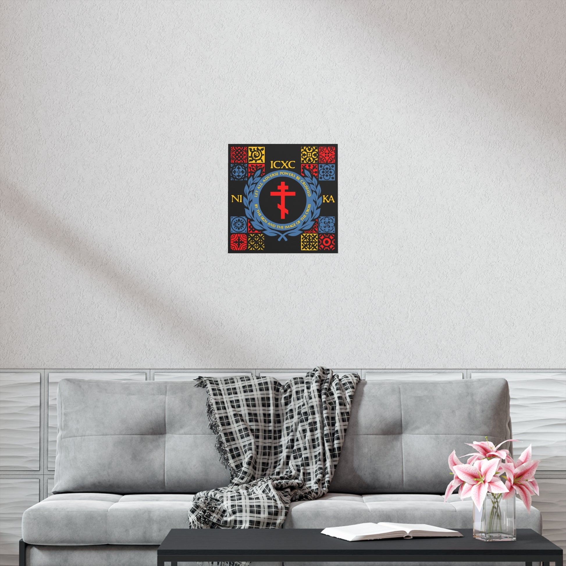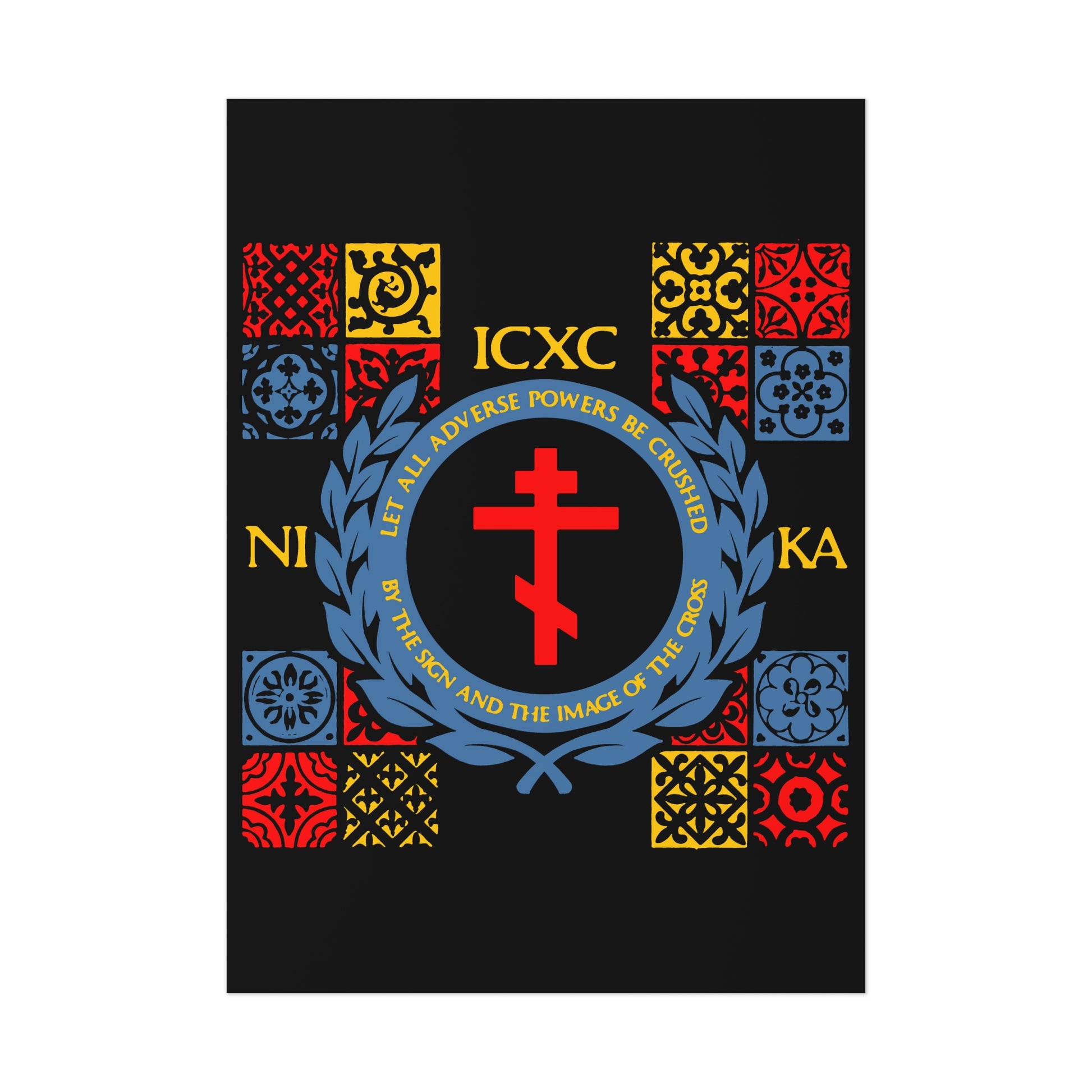 Let All Adverse Powers Be Crushed (Red, Yellow & Blue Design) | ICXC NIKA | Medieval Tile Design | Orthodox Christian Art Poster