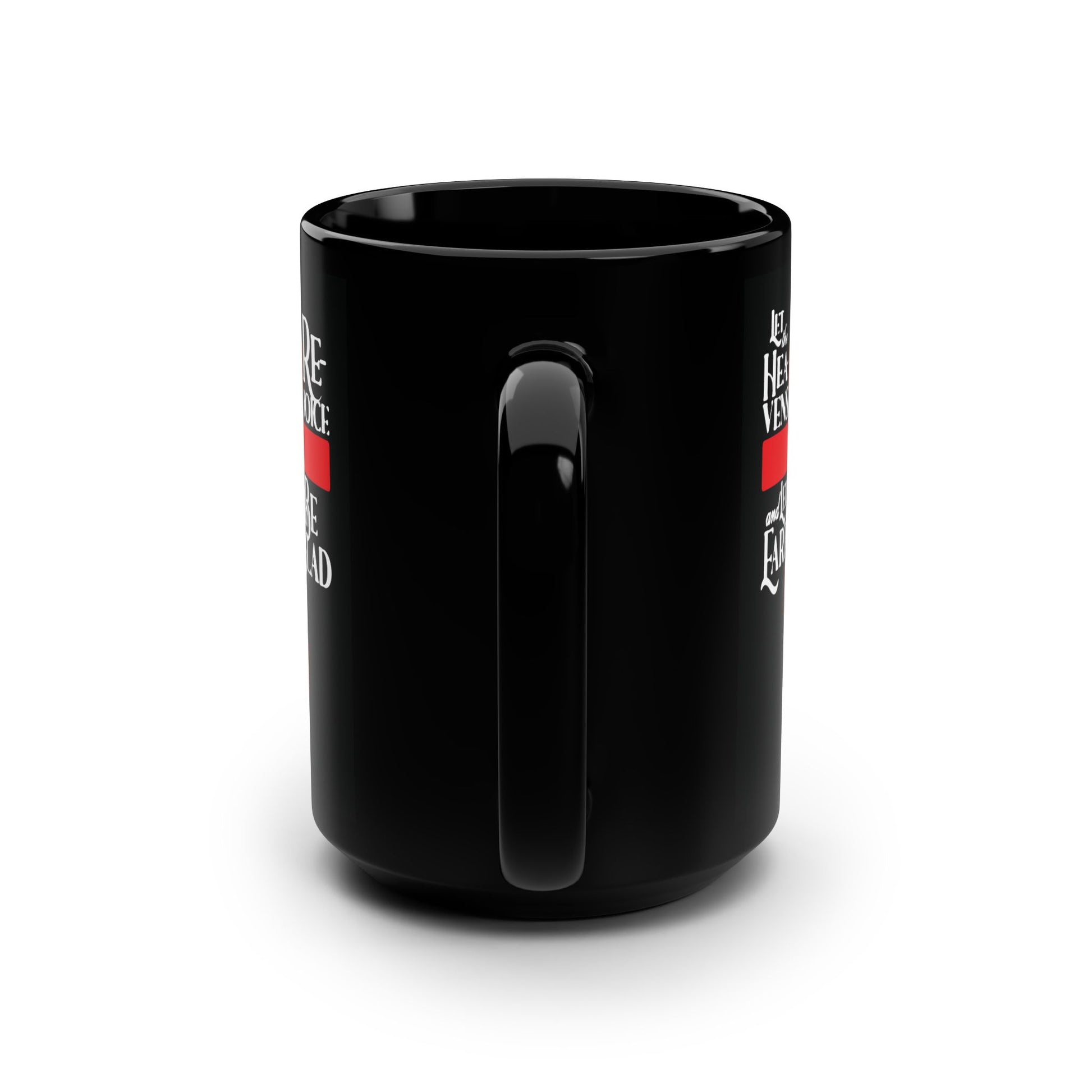 The Remembrance of Death Black 15 oz Custom Orthodox Christian Mug is for the participatory sport known as Orthodox Coffee Hour: bold designs to accompany hot fellowshipping fuel. It's larger than the average coffee mug and with a large handle to match. The design is typically printed on two sides (see product images).