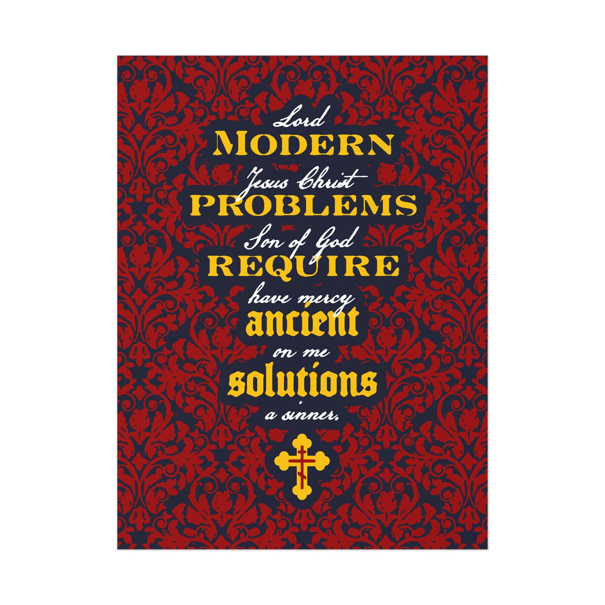 Modern Problems Require Ancient Solutions (Jesus Prayer, Floral Background) No. 2 | Orthodox Christian Art Poster
