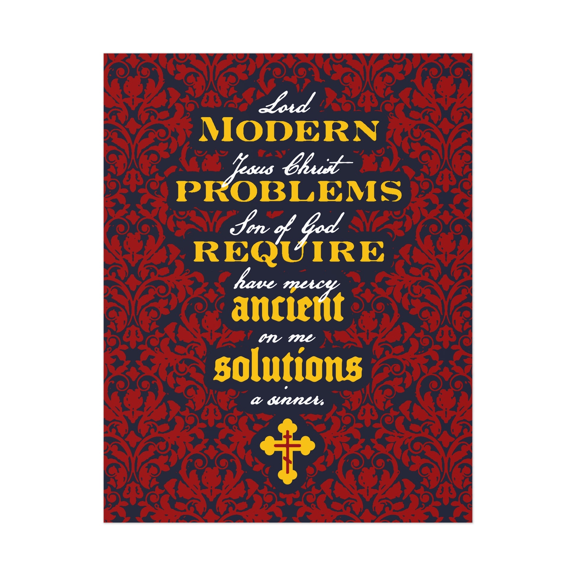 Modern Problems Require Ancient Solutions (Jesus Prayer, Floral Background) No. 2 | Orthodox Christian Art Poster
